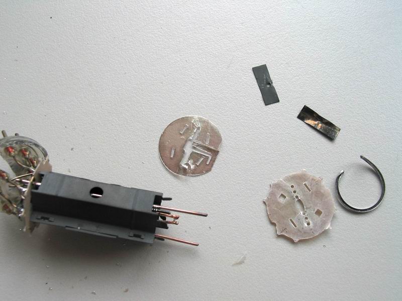 这是颗用于高频放大的通用双三极管6N1。1是吸气剂;2是灯丝阴极和栅极的组合体;3就是阳极。